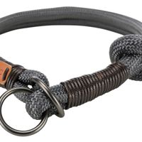 Trixie Be Nordic Slip Halsband Hond Donkergrijs Bruin 55 x 1,3 cm De Trixie Be Nordic Slip Halsband Hond Donkergrijs / Bruin 55 x 1,3 cm is een stoere halsband voor de hond in Scandinavische, maritieme sfeer met bruin leer. Op zoek naar een stoere halsband voor uw hond? Met deze Be Nordic lijn van Trixie bent u aan het juiste adres! Deze lijnen en halsbanden zijn gemaakt in maritieme stijl, die zich kenmerkt door een strakke, robuuste uitstraling met aardse kleuren. Deze mooie, ronde halsband van gevlochten touw is donkergrijs en heeft stoere bruine leren accenten. Het uiteinde is omwikkeld met bruin materiaal. De halsband heeft een anti-touwvoorziening die traploos verstelbaar is door middel van knopen. Een prachtige halsband die uitblinkt in stijl en gebruiksgemak! - Halsband van Trixie - Gemaakt van rondgeweven touw - Met terugtrekvoorziening die verstelbaar is door middel van knopen Afmetingen: 55 x 1,3 cmSpecificaties