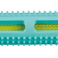 Trixie Denta Fun Bot Mintfresh Natuurlijk Rubber 14 cm De Trixie Denta Fun Bot Mintfresh Natuurlijk Rubber 14 cm is een botje van natuurlijk rubber, met muntsmaak en goed voor de tandhygiëne. Spelen wordt nu nog leuker en nuttiger! Dit leuke bot helpt ook het gebit van uw hond gezond te houden. Het bot is gemaakt van natuurlijk rubber met een heerlijke muntsmaak en een verfijnde structuur. Dit masseert het tandvlees bij het kauwen op het speeltje, en het weefsel in het bot helpt ook om het gebit schoon te houden. Het weefsel wrijft tegen de tanden als er op gekauwd wordt en helpt zo tandsteen en tandplak te verminderen.Botvormig speeltje van natuurlijk rubber voor honden - Helpt het gebit schoon te houden - De structuur van de binnen- en buitenkant van het bot masseert het tandvlees en reinigt de tanden - Met een heerlijke muntsmaakAfmeting: 14 cmSpecificaties