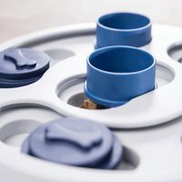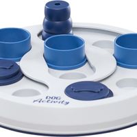 Het Trixie Dog Activity Game Flip & Fun 23 x 23 cm is een bordspel voor uw hond waarbij uw huisdier verschillende technieken moet gebruiken om zijn beloning te krijgen. Het spel is gemaakt van kunststof en voorzien van een kegel als stop, verschillende kommen en schuifdeksels. Door de kegel als stopper te gebruiken, kan de moeilijkheidsgraad worden verhoogd. De anti-slip rubberen ring zorgt ervoor dat het speeltje niet wegglijdt tijdens het spelen. Bij het spel wordt ook een handleiding geleverd met tips en trucs om de training te optimaliseren.