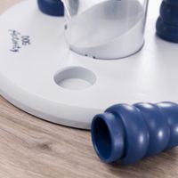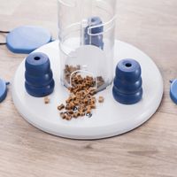 Tower Quest GameVul elke verdieping van de toren met een traktatie voor uw hond en vergeet niet de traktaties onder de groene knijpers te stoppen. Uw hond kan een verdieping uit de toren halen door het touw te verwijderen en de snacks zullen op de open bodem vallen waar uw lieveling op de traktatie kan kauwen.Afmeting: ø 25x27 cmKleur: Zwart, blauw en groenMateriaal: Plastic