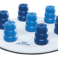 Uitdaging voor lichaam en geestHet spel bestaat uit een bord met 7 kegels. Door de kegels op te tillen, kan uw hond zijn beloning bereiken, zoals dagelijkse traktaties of lekkere traktaties. Al met al zal uw hond uitgedaagd worden, langzamer eten en minder eten, wat allemaal zal helpen om zijn spijsvertering gezond en zijn gewicht goed te houden.