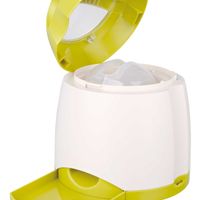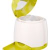 Memorytrainer Strategiespel 2.0 20x24 cmUitdagend spel voor de actieve hond! Wanneer u op de knop van de afstandsbediening drukt, valt er een traktatie uit de dispenser. Door de afstandsbediening op een andere plaats en verder weg van de dispenser te leggen, wordt uw hond uitgedaagd zijn best te doen om een traktatie te bemachtigen. Snacks worden in de dispenser geplaatst door de bovenklep te verwijderen en het roterende reservoir recht te zetten. Een schepje wordt bij de dispenser geleverd om het vullen te vergemakkelijken. Ook inbegrepen zijn een zuignap (voor plaatsing op een staand oppervlak zoals een raam) en een pin (voor gebruik in de tuin). Materiaal: kunststofKleur: wit en groenAfmeting: ø 20×24 cm De dispenser werkt op 3 AAA batterijen en de afstandsbediening op 4 C-Baby batterijen, die niet zijn meegeleverd.Specificaties