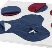 voor honden en katten , met verschillende zakken en compartimenten , kan ook gebruikt worden voor de dagelijkse voeding , voorkomt schrokken tijdens de maaltijd , grotere snacks of kleine speeltjes kunnen er ook in verstopt worden , om de moeilijkheidsgraad te verhogen kan de deken ook opgevouwen en verfrommeld worden , polyester , incl. handleiding met tips en trucs voor een optimale trainingSpecificaties
