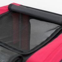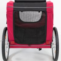 De fietskar heeft zowel aan de voor als achterzijde een opening en kan worden opgevouwen. Dit maakt hem erg makkelijk op te bergen.