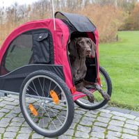 Met deze Trixie hondenfietskar in maat L kan je je hond veilig en eenvoudig mee op pad nemen. Of je nou naar vrienden gaat en een drankje wil drinken of lekker met je hond naar het bos wil, de fietskar van Trixie zorgt voor het veilige vervoer van je geliefde huisdier. De fietskar is ook uitermate geschikt voor het vervoeren van je hond als hij wat ouder is of wat slechter te been is.