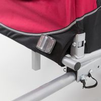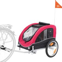 Dit is een fietskar en buggy ineen. De fietskar is namelijk om te bouwen met een los verkrijgbare beugel tot een buggy. Dit maakt het makkelijk om de kar voor je uit te duwen als je aan het joggen of wandelen bent.