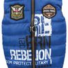 De jas heeft een stoere look, met een militaire print en een leuke rits in het midden. De jas is gemaakt van polyester en wordt geleverd in een koele kleur blauw.