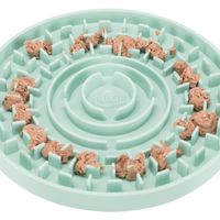 Trixie Junior Lick Plate Mint Green 15 x 15 cm De Trixie Junior Lick Plate Mint Green van 15 x 15 cm is een rond Lick'n'Snack bord voor puppy's en kleine honden, ideaal om ze bezig te houden met bijvoorbeeld pate, natvoer of zuivelproducten. Likken is een aangename bezigheid voor honden: het heeft een rustgevend effect en creëert rust. In deze likplaat kunt u daarom lekkere traktaties stoppen zoals paté, natvoer of zuivelproducten. De hond zal lang bezig zijn met het weglikken van de beloning, waardoor verveling met slechts een kleine hoeveelheid traktatie wordt voorkomen. In de zomer kunt u de traktatie inclusief de snacks ook invriezen, zodat uw pup koel blijft en het nog langer duurt voordat hij zijn traktatie krijgt. - Likplaat voor pups - Rond van vorm, ideaal voor paté, natvoer of zuivelproducten - Kalmeert en verzacht het dier - Houdt het lang bezig met slechts een kleine hoeveelheid snacks - Invriesbaar voor extra lang en verkoelend plezier - Gemaakt van thermoplastisch rubber Afmetingen: 15 x 15 cmSpecificaties