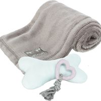 Fleecedeken (polyester), 70 × 50 cm: machinewasbaar tot 60 °C pluche knuffel (polyester), 22 cm knuffel (TPR/katoen), 13 cmSpecificaties
