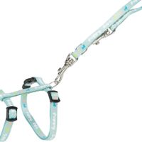 Trixie Junior Puppy Tuigje Met Riem Mint 23 -34 x 0,8 cmHet Trixie Junior Puppy Tuigje Met Riem Mint 23 - 34 x 0,8 cm is een puppy tuigje voor jonge of kleine honden, gemaakt van webbing met een traploos verstelbare nek- en buikriem. Ook de riem is drievoudig verstelbaar. Zo kunt u het tuigje aanpassen aan de grootte van uw puppy en zal uw kleine viervoeter leren overal met u mee te gaan. Met een leuke print en verkrijgbaar in diverse kleuren.