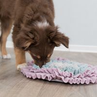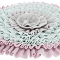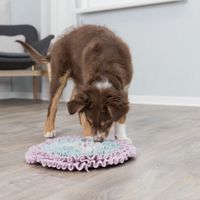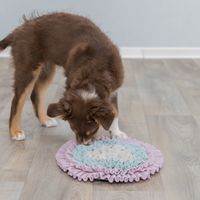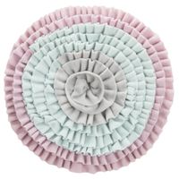 Trixie Junior Snuffelmat Zacht Roze / Mintgroen / Grijs 38 x 38 cmDe Trixie Junior Snuffelmat Zacht Roze / Mintgroen / Grijs 38 x 38 cm is een originele, ronde snuffelmat voor puppy's en kittens, ideaal tegen verveling en schrokken, en gewoonweg leuk! Deze ronde mat is perfect voor het verstoppen van snacks en traktaties, waardoor uw huisdier langere tijd bezig blijft met het zoeken naar zijn/haar beloning. Dit stimuleert natuurlijk gedrag en gaat verveling tegen. De mat kan ook worden gebruikt om het dagelijkse voer te verstrekken: dit voorkomt schrokken en houdt het dier actief op zoek naar voedsel voor een lange tijd. De mat wordt geleverd met een uitneembare kunststof plaat die de mat netjes in vorm houdt en gemakkelijk schoon te maken is. Originele ronde snuffelmat voor puppy's en kittens- Zorgt ervoor dat uw huisdier actief op zoek gaat naar traktaties en snacks- Kan ook gebruikt worden met de gebruikelijke huishoudzeep.Specificaties