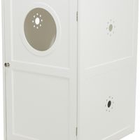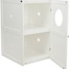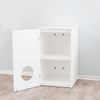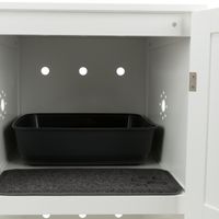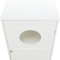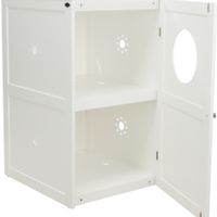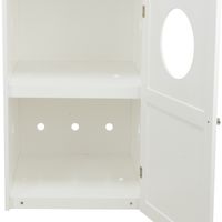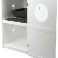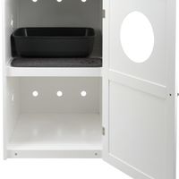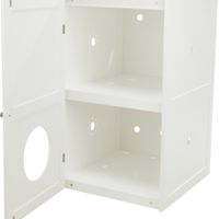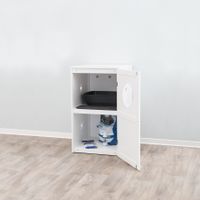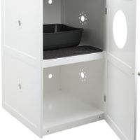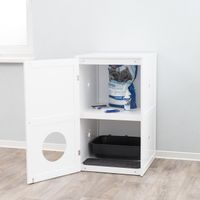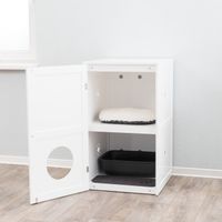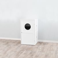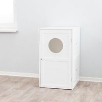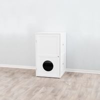Trixie Kattenhuis Voor Kattenbak XL Wit 58 x 53 x 90 cm Het Trixie Kattenhuis Voor Kattenbak XL Wit 58 x 53 x 90 cm is een kattenhuis van gelakt MDF om te gebruiken als slaapplaats of als behuizing voor de kattenbak. Dit multifunctionele huis geeft uw kat een praktische eigen plek! Dit leuke kattenhuis is gemaakt van wit gelakt MDF en bestaat uit twee verdiepingen. Een van de verdiepingen is toegankelijk voor de kat door middel van een rond gat, dat desgewenst op de bovenste of onderste verdieping geplaatst kan worden. Deze vloer kan dus gebruikt worden voor een kattenbak, maar bijvoorbeeld ook als slaap- of schuilplaats. De andere vloer is afgesloten en biedt u als eigenaar de mogelijkheid om de kattenbakvulling of speeltjes van uw kat op te bergen. De ventilatiegaten aan de achterzijde zorgen voor voldoende luchtcirculatie op elke verdieping. De deur sluit door middel van een magnetisch slot. Dit kan zowel aan de rechter- als aan de linkerkant worden gemonteerd, met het gat desSpecificaties