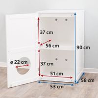 Kattenhuis voor kattenbak XL, 2 verdiepingen, MDF, 53 × 90 × 58 cm, wit