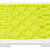De Trixie Lick'N'Snack Plate TPR / Plastic 20 x 20 cm is een leuk hondenspeeltje gemaakt van thermoplastisch rubber waarbij de hond snacks van het bord moet likken om zijn beloning te krijgen. Het is bekend dat likken een kalmerend effect heeft op de hond en zorgt voor kalmte. Het opeten van de kleine hoeveelheid snacks zorgt voor langdurige afleidingU kunt bijvoorbeeld paté, natvoer of zuivelproducten op het bord strooien. Voor een extra frisse kick kunt u het bord vullen met snacks en invriezen. De handige rand vangt vocht op en de anti-slip hoeken houden het bord stevig op de grond.
