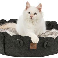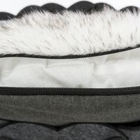 * vilt (polyester) * vormvast * omkeerbaar kussen met hoes van langharig pluche (polyester)/geweven stof en polyester fleece vullingSpecificaties