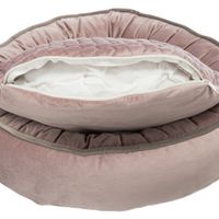 De Trixie Hondenmand Iglo Livia Roze 50 x 50 cm is een knusse hondenmand in velours look met een pluche binnenkant en een flexibel kussen. In deze mand kan uw hond uren wegdromen! Deze mand heeft een fijne ronde vorm. De buitenkant heeft een mooie velours look en de binnenkant is voorzien van pluche bekleding. De vulling van polyester fleece houdt uw hond comfortabel en door de antislipbodem kan uw huisdier gemakkelijk in en uit de mand stappen. Het leuke kussen is ook wendbaar en heeft twee verschillende designs zodat u zelf de uitstraling van de mand kunt kiezen!