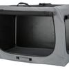 Trixie Soft Kennel Easy Travel Bench Grijs 95 x 69 x 63 cmDe Trixie Soft Kennel Easy Travel Bench Grijs 95 x 69 x 63 cm is een reisbench voor de hond, met stevig metalen frame, stoffen omheining en schapenvacht-look matras. Ideaal om mee te nemen als u uw hond of kat meeneemt op visite of uitstapje of naar beurzen of tentoonstellingen! Deze eenvoudig op te zetten mobiele kennel voor de hond bestaat uit een stevig metalen frame met een polyester omheining. De gazen inzetstukken zijn gemakkelijk op te rollen en zorgen voor een goede ventilatie. De bench kan aan drie kanten worden geopend voor een gemakkelijke toegang tot het dier en dankzij de drie handgrepen is hij gemakkelijk te verplaatsen. De bench is voorzien van een schapenvacht-look deken (polyester) voor meer comfort voor het dier. De vorm en het uiterlijk van de bench maken hem geschikt voor vele doeleinden.