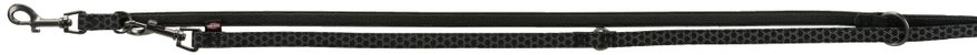 Trixie Hondenriem Night Reflect Verstelbaar Zwart 200 x 1,5 cm De 200 x 1,5 cm Trixie Hondenriem Night Reflect Verstelbaar Zwart is een hondenuitlaatriem gemaakt van kunstleer en webbing die reflecterend is. Deze leuke riem heeft een vintage look met een bovenkant van webbing en een onderkant van kunstleer. De riem is drievoudig verstelbaar en voorzien van een reflecterend patroon zodat u en uw hond goed zichtbaar zijn in het donker. - Leuke riem voor de hond - Met reflecterend motief - Bovenste laag van webbing, onderste laag van kunstleer - Drievoudig verstelbaar Afmetingen: 200 x 1,5 cmSpecificaties