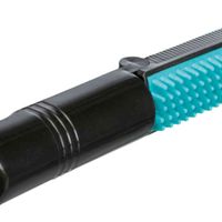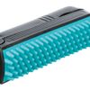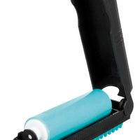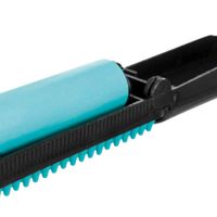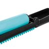 De pluisjesroller met borstel is 23 cm lang en zwart met turkoois van kleur.