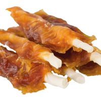 Trixie Premio Chicken Flags 400 gram De Trixie Premio Chicken Flags 400 gram zijn smakelijke kluiven voor honden gemaakt van rawhide met kipfilet. Deze Trixie kauwrolletjes zijn gemaakt van rolletjes rawhide bedekt met smakelijke kipfilet. Heerlijk om op te smullen en daarna op te kauwen! De rawhide wordt zacht bij het kauwen, en de wrijving met de tanden vermindert tandsteen en bevordert de gebitsverzorging. Bovendien bevatten deze smakelijke Premio Flags veel eiwitten en zijn ze rijk aan vlees, met een vleesgehalte van maar liefst 65%. Een gezonde snack voor uw hond die de verveling bestrijdt! - Lekkere kauwrol voor uw hond - Gemaakt van rawhide bedekt met een stukje smakelijke gedroogde kipfilet - Vleesgehalte 65% - Glutenvrij Inhoud: 400 gramSpecificaties
