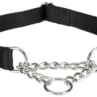 Trixie Halsband Hond Premium Choker Zwart 45-70x2,5 cm De Trixie Halsband Hond Premium Choker Zwart 45-70x2,5 cm is een anti-trekhalsband voor de hond met een ketting en verstelbare riem. De halsband bestaat deels uit een slipketting en gaat het trekken aan de lijn tegen. Naast deze anti-trekfunctie is de halsband voorzien van een traploos verstelbare singelband voor een goede pasvorm. De halsband is gemaakt van fris, felgekleurd nylon. - Premium hondenhalsband met anti-trekfunctie - Gedeeltelijk gemaakt met een slipketting - Traploos verstelbare singelband Afmetingen: 45-70x2,5 cmSpecificaties