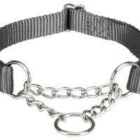 Trixie Premium Hondenhalsband Anti-Tug Grijs 54 - 70 x 2,5 cm De Trixie Premium Hondenhalsband Anti-Tug Grijs 54 - 70 x 2,5 cm is een stevige nylon halsband met een traploos verstelbare webbing ketting. Deze halsband is grotendeels gemaakt van nylon, maar heeft aan de achterkant een ketting: deze trekt strak als er te veel druk op komt te staan en gaat zo overmatig trekken tegen. De halsband heeft een ring voor het bevestigen van de riem en een Trixie label aan de zijkant.- Stevige nylon halsband- Traploos verstelbaar- Voorzien van een kleine chokeketting om trekken tegen te gaanMaten: 54 - 72 x 2,5 cmSpecificaties