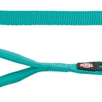 Trixie Premium Hondenriem Oceaan Blauw 100 x 2 cmDe Trixie Premium Hondenriem Oceaan Blauw 100 x 2 cm is een zeer robuuste riem voor de hond, met een met neopreen gevoerd handvat en extra oogjes. Een zeer strakke maar toch complete riem! Deze riem is gemaakt van zeer robuust webbing met een handvat. Het handvat is gevoerd met neopreen, zodat het comfortabel in de hand ligt. De leiband is voorzien van een musketonhaak en embleem met het Trixie logo. Met de extra oogjes kunt u bijvoorbeeld de badge van uw hond of een lampje bevestigen.