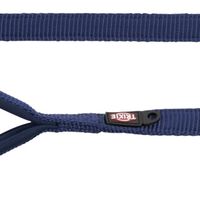 Trixie Premium Hondenriem Indigo 100 x 2 cmDe Trixie Premium Hondenriem Indigo 100 x 2 cm is een zeer robuuste riem voor de hond, met een met neopreen gevoerd handvat en extra oogjes. Een zeer strakke maar toch complete riem! Deze riem is gemaakt van zeer robuust webbing met een handvat. Het handvat is gevoerd met neopreen, zodat het comfortabel in de hand ligt. De leiband is voorzien van een musketonhaak en embleem met het Trixie logo. Met de extra oogjes kunt u bijvoorbeeld de badge van uw hond of een lampje bevestigen.