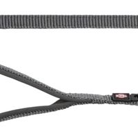 Trixie Premium Hondenriem Grijs 100 x 2,5 cmDe Trixie Premium Hondenriem Grijs 100 x 2,5 cm is een zeer robuuste riem voor de hond, met een met neopreen gevoerd handvat en extra oogjes. Een zeer strakke en toch complete riem! Deze riem is gemaakt van zeer robuuste webbing met een handvat. Het handvat is gevoerd met neopreen, zodat het comfortabel in de hand ligt. De leiband is voorzien van een musketonhaak en embleem met het Trixie logo. Met de extra oogjes kunt u bijvoorbeeld de badge van uw hond of een lampje bevestigen.