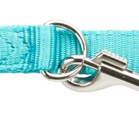 Trixie Premium Hondenriem Dubbelgestikt Verstelbaar Rood Oceaan Blauw x 2 cm De Trixie Premium Hondenriem Dubbelgestikt Verstelbaar Oceaan Blauw 200 x 2 cm is een nylon hondenriem gemaakt van webbing, drievoudig verstelbaar en voorzien van extra oogjes. Op deze manier is de riem geschikt voor meerdere doeleinden en kunt u uw hond laten lopen op een lengte die het meest geschikt is voor de situatie. U kunt hem gemakkelijk verstellen door de musketonhaak aan een van de ringen te klikken. Het andere uiteinde eindigt ook in een musketonhaak, voor eenvoudige bevestiging aan een halsband of tuigje. De extra oogjes zijn ook geschikt om bijvoorbeeld een badge of lampje aan te bevestigen. Strak, solide en toch zeer functioneel! - Leiband voor hond gemaakt van webbing - Verstelbaar: klik de haak op de ring van uw keuze voor de gewenste lengte - Extra oogjes ook geschikt voor het bevestigen van penning of lichtje - Met musketonhaak voor eenvoudige bevestiging aan halsband of tuigje - Geschikt voor alle maten hond.Specificaties