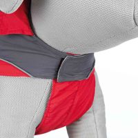 De hondenregenjas Lorient is grijs met rood en is verkrijgbaar in verschillende maten. De maat in de titel bovenaan de pagina komt overeen met de ruglengte: