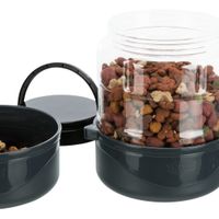 - bestaat uit een voerreservoir 2 l en twee bakken  0,75 l