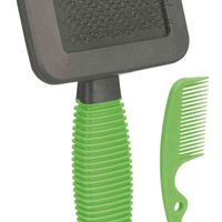 Slickerborstel, kunststof/metalen pinnen, 7 × 13 cm, groen