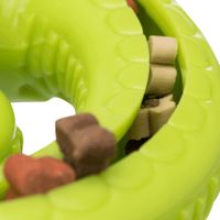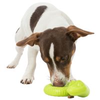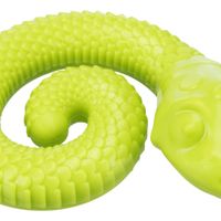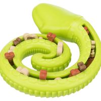 Trixie Snack-Snake TPR Opgerold 18 cm De Trixie Snack-Snake TPR Opgerold 18 cm is het ideale speeltje om uw hond spelenderwijs een beloning te geven, perfect tegen verveling! Deze leuke Snack-Snake van Trixie zal u helpen verveling tegen te gaan door uw hond op een speelse manier te belonen. Deze leuke Snack-Run is gemaakt van thermoplastisch rubber en is aan de onderkant open. In deze spleetvormige opening kunt u verschillende soorten voer of snacks stoppen, zodat de hond op een speelse manier zijn beloning krijgt. De smalle opening maakt hem ook geschikt voor bijvoorbeeld leverworst: de hond zal lange tijd bezig zijn om alle paté uit de opening te likken. Dit houdt uw hond bezig, ook als u er niet bent, en voorkomt verveling. - Leuk snackspeeltje voor de hond - Slang van thermoplastisch rubber met een gleufvormige opening aan de onderkant - In de opening kunt u lekkernijen, brokjes of paté stoppen, die de hond eruit moet halen - Voorkomt verveling Afmetingen: 18 cmSpecificaties