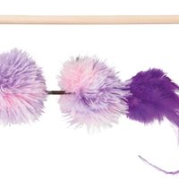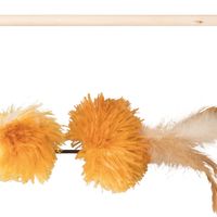 Speelhengel pompomballen, hout/pluche, valeriaan, 40 cm