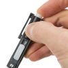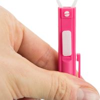 Als je de kop van de teek met de tang in je hand hebt, kun je de knop loslaten. De tang klemt zich om de kop van de teek. Draai vervolgens tegen de klok in om de teek uit het lichaam te halen. Doe de teek in een bakje en controleer of je hem helemaal verwijderd hebt. De ziekte van Lyme kan binnen 24 uur worden overgebracht, dus het is belangrijk om snel te handelen als u een teek ziet!