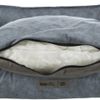 Trixie Vital Mand Calito Angular Blauw/Grijs 80 x 60 cm De Trixie Vital Mand Calito Angular Blauw/Grijs 80 x 60 cm is een orthopedische hondenmand met visco-elastiek en schuimvlokken, wendbaar kussen en hoes in fancy velours en kunstlederlook. Combineer de beste ondersteuning voor uw hond met stijl met deze prachtige, chique Calito mand van Trixie! Deze mand biedt uw hond de perfecte ondersteuning tijdens het slapen, dankzij de vulling van visco-elastiek en schuimvlokken met memory-effect. Deze laag zorgt voor een perfecte drukverdeling tijdens het rusten en slapen. Dit kan gewrichtsproblemen helpen voorkomen of verminderen en zorgt ervoor dat de hond vrolijker en vitaler wakker wordt. De mand heeft een 40 graden wasbare polyester hoes met een velours- en kunstlederlook in een kleurencombinatie die zowel bij moderne, industriële als landelijke interieurs past. Het kussen wendbSpecificaties