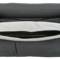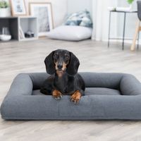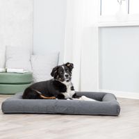 Trixie Hondenmand Pulito Vital Grijs 80 x 60 cmDe Trixie Hondenmand Pulito Vital Grijs 80 x 60 cm is een orthopedisch hondenkussen met waterafstotende voering, geschikt voor dieren met een allergie. Dit is mogelijk door de speciale voering: deze is gemaakt van polyester in katoenlook en wasbaar op maar liefst 95 graden Celsius! Hierdoor is hygiënisch reinigen mogelijk, want huisstofmijt wordt gedood en huidschilfers en pollen worden effectief verwijderd, evenals ziektekiemen, parasieten en vuil. De waterafstotende en urinebestendige binnenvoering beschermt de vulling bovendien tegen verontreiniging. De vulling bestaat uit visco-elastische schuimvlokken van 12-16 cm voor maximaal slaapcomfort. Het grote volume van de vulling zorgt voor een goede ondersteuning tijdens de slaap. De polyester fleece vulling maakt de rand ook lekker stevig om tegenaan te kruipen!