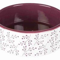 Voer/waterbak, bloemmoetief, keramiek, 0,8 l/ø 16 cm, wit/bes