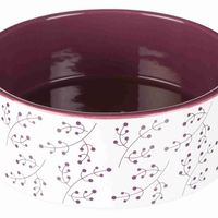 Voer/waterbak, bloemmoetief, keramiek, 1,4 l/ø 20 cm, wit/bes