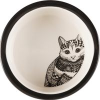 Voer/waterbak, keramiek, 0,3 l/ø 12 cm, wit/zwart
