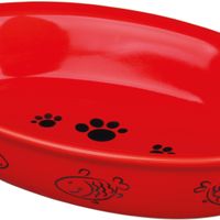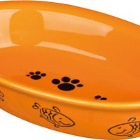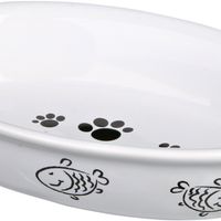 Voer/waterbak, ovaal, poot-/vismotief, keramiek, 0,2 l/15 × 10 cm
