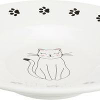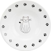 Voer/waterbak, plat, kat/poten, keramiek, 0,2 l/ø 15 cm, wit