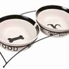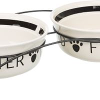 Voer/waterbak-set, keramiek/metaal, 2 × 2,6 l/ø 25 cm/54 × 12 × 24 cm, wit/zwart