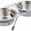 Voer/waterbak-set, klapperbescherming, RVS/metaal, 2 × 0,45 l/ø 13 cm/27 × 6 × 1