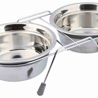 * 2 roestvrijstalen voer/waterbakjes met houder * metalen houder, verchroomd * geluidsarm dankzij siliconen ringen * anti-slip dankzij siliconen voetjes Voerbakje vaatwasserbestendigSpecificaties