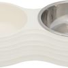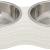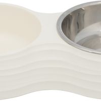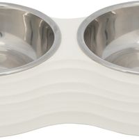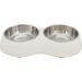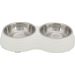 Voer/waterbak-set, melamine/RVS, 2 × 0,2 l/ø 11 cm/25 × 4 × 14 cm, wit