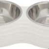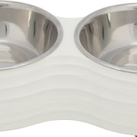Voer/waterbak-set, melamine/RVS, 2 × 0,4 l/ø 14 cm/32 × 6 × 17 cm, wit