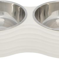Voer/waterbak-set, melamine/RVS, 2 × 0,8 l/ø 17 cm/40 × 7 × 22 cm, wit
