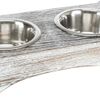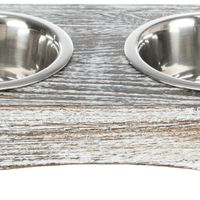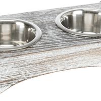 Voer/waterbak-set, RVS/hout, 2 × 0,45 l/ø 12 cm/36 × 7 × 19 cm, wit